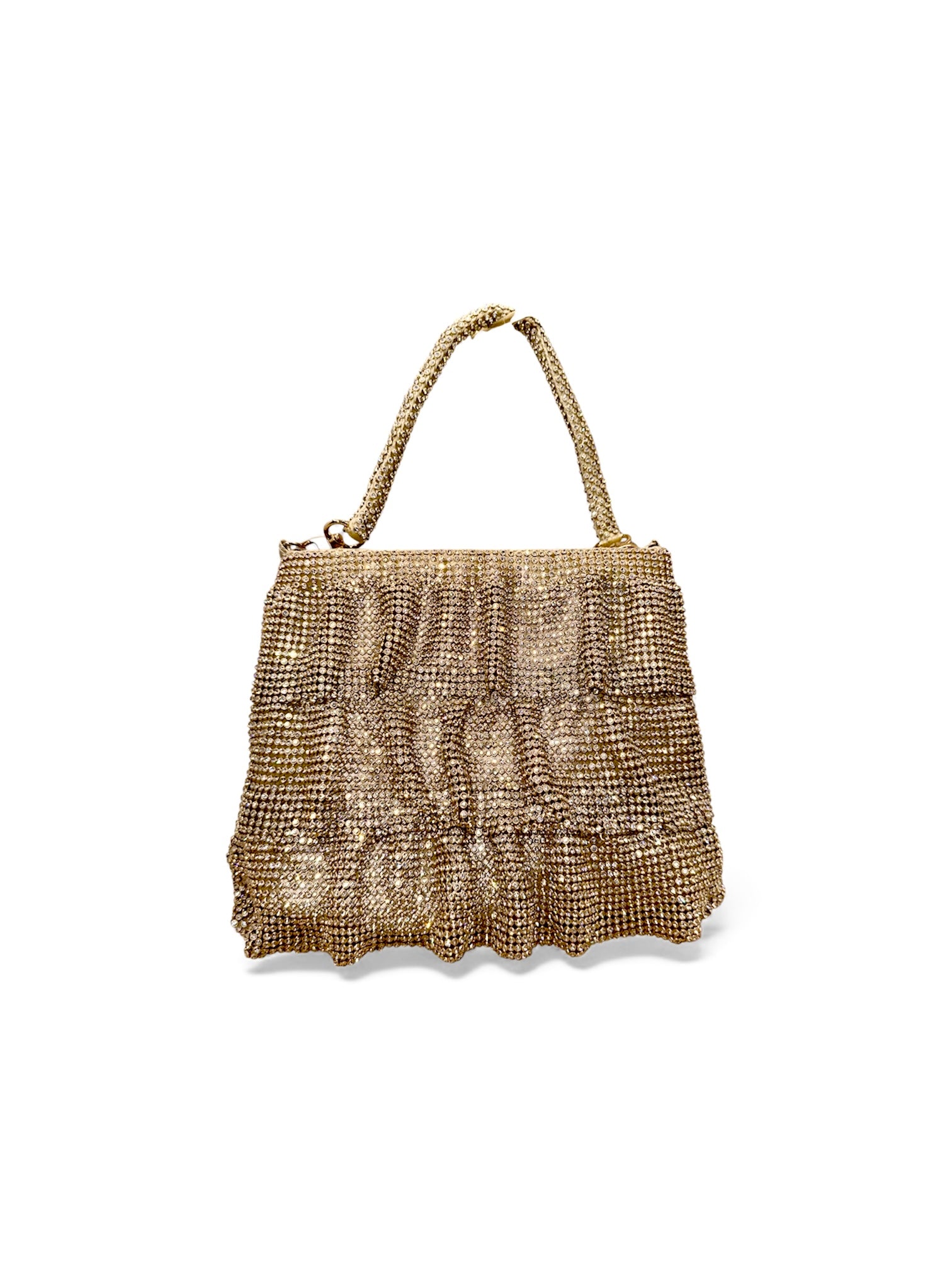 Shine brighter than ever with our Radiant Gold Mesh Evening Bag, a luxe statement piece designed to elevate every outfit. Crafted with shimmering light gold mesh that catches the light from every angle, this bag blends vintage glamour with modern sophistication.